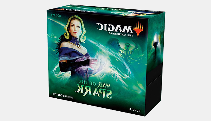 Your War of the Spark Bundle includes 10 booster packs with at least one PLANESWALKER IN EVERY PACK, 80 plus basic land cards, 1 Spindown life counter, and a player’s guide.